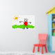Un joli dessin animé enfantin d'un homme bâton debout dans l'herbe un jour d'été. image disponible sur divers cadeaux et produits.