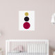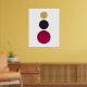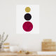 Une affiche d'art abstrait moderne et minimaliste de trois cercles sur un arrière - plan blanc. Le cercle plus grand au fond est dans un rouge profond avec un effet délavé superposé, le cercle au-dessus est légèrement plus petit dans un violet foncé et le cercle très dernier est plus petit encore dans le jaune. Un joli ajout à n'importe quelle maison.