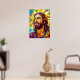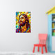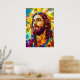 Vitrail Art de Jésus-Christ avec un mignon lapin de pâques et des oeufs de pâques vibrants. De mignons animaux de lapin pour la résurrection de la religion chrétienne. Joyeux Pâques ! Poster de Pâques.