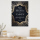 Une suite mariage magnifique, avec un motif complexe de style Nuevo d'origine en faux or, sur une base de charbon de minuit remarquable. Votre texte est choisi dans un blanc saisissant, pour créer un contraste qui épelle le luxe et le drame. Parfait pour un couple qui veut avoir un impact.