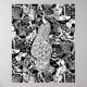 Affiche Art Nouveau Peacock Print, noir et blanc