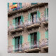 Fenêtres décoratives et balcon de style moderniste/Art nouveau catalan. Dans le coin supérieur gauche, un drapeau espagnol. (Photo, Espagne de Barcelone, 2019)