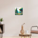Disque golf art avec une vibes de jeu cool pixel art disque d'or parcours dans les tons bleu et vert.