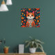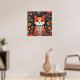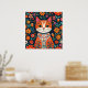 Affiche Art populaire Whimsical Chat et Fleurs