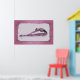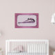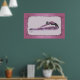 C'est un dessin stylisé d'une danseuse de ballet qui s'étire sur ses jambes. Il est doté d'une bordure rose rose avec des tourbillons noirs.