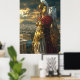 Athéna se dresse sur des terres anciennes, déesse de la sagesse et de la guerre, son bouclier doré reflétant la dernière lumière du jour. Une chouette regarde de son épaule, symbole de sa connaissance et de sa prévoyance. Cette oeuvre allie force et intelligence, parfaite pour les amateurs de mythologie et les amateurs d'art imaginaire épique.