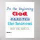 Affirmez votre foi en la création. L'Écriture biblique de l'Ancien Testament de Genèse 1:1 "Au commencement Dieu créa les cieux et la terre" en caractères gras et colorés rouges, bleus et verts sur un arrière - plan blanc clair, lui donnant un beau look propre, simple et élégant.