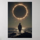 Une scène puissante de contemplation cosmique. Sous une éclipse flamboyante, une silhouette solitaire se tient debout au bord de la mer, évoquant une réflexion sur l'univers et l'inconnu. Parfait pour les espaces qui embrassent l'art émouvant, l'impact visuel et la profondeur.