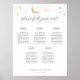 Bienvenue à vos invités de douche avec ce tableau de sièges avec nuages et étoiles avec une lune d'or. Faites de la place pour plus (ou moins) de clients en cliquant sur le bouton "personnaliser" et diminuez ou augmentez la taille de police. Des tables supplémentaires peuvent également être supprimées. En plus de l'emplacement de chaque invité.