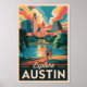 Conception de déplacement vectoriel rétro Austin. De l'exploration de South Congress Avenue à la découverte des extérieurs de Zilker Park et Barton Springs, Austin offre un mélange parfait de charme urbain, de beauté naturelle et d'énergie décontractée.