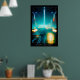 Illustration futuriste de science-fiction avec une onde de synthés, vibe des années 80.