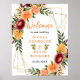 Affiche Autumn Burgundy Orange Floral Wedding Welcome Sign