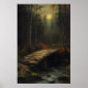 Affiche Autumn Moonlit Forest Bridge Rustic Woodland Art