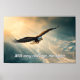 Avec chaque défi, montez plus haut : affiche inspirante d'un aigle qui s'envole à travers les montagnes.