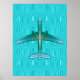 Affiche Avion Art Déco, Turquoise, Turquoise et Aqua