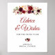 Aquarelle peinte fleurs bordeaux et rousses et écriture de lettrage noir. Dans un mémorial d'amour, des conseils de douche nuptiale et des voeux signe.