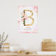 Affiche B Lettre Monogramme Feuille d'or rose Magnolia Flo