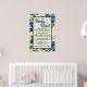 Panneau de baby shower mignonette à thème mûre bleuet bleu, avec texte facile à customiser. Modifiez le texte en un événement ou une occasion. Ce panneau se convertira facilement en 20 x 20 ou 24 x 36 pouces.