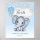 Montrez à vos invités où les gâteries sont à votre fête de baby shower avec cette adorable conception d'éléphants de bébé garçon, l'un est un mignon éléphant en montgolfière bleue avec nuage blanc, et l'arrière - plan est un dégradé bleu et blanc.