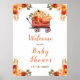Affiche Baby Shower Camion de Citrouille Floral Orange