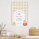 Affiche de bienvenue baby shower avec arche de citrouilles d'aquarelle et motif en vichy neutre. Customisez avec vos informations pour que la mère soit. Cliquez sur "cliquer pour customiser plus loin" pour modifier le style, la taille ou la couleur de la police.