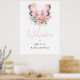 Florales de papillons modernes Bienvenue au Baby shower. Disponible numériquement et imprimé. Un papillon sucré à travers les fleurs est en haut et un élégant script moderne pour Welcome. Personnalisez facilement le reste des mots au besoin.