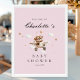 "Bienvenue dans votre baby shower avec notre affiche personnalisable. En quelques clics, personnalisez-le avec vos propres détails et préférences. Choisissez parmi une variété de polices, de couleurs, de tailles et de positions pour le rendre unique à vous. Élevez votre événement avec cette pièce centrale élégante et facile à éditer."