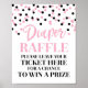 Panneau de tombola pour baby shower dans un motif de confetti noir et rose.