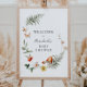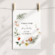 Bienvenue dans votre baby shower avec ce magnifique panneau, avec une couronne de verdure, de champignons des bois et de fleurs sauvages. Ajoutez le nom du client d'honneur, la date de la douche et le texte de bienvenue personnalisé en utilisant les champs fournis.