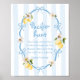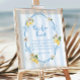 Ajoutez une touche amusante et interactive à votre baby shower avec cet adorable panneau de chasse au Pacifique ! Avec des citrons aquarelle, des arcs bleu doux et des rayures bleues et blanches classiques, ce panneau invitation les invités à la recherche de pacificateurs cachés — une activité joyeuse pour votre célébration d'inspiration méditerranéenne.
