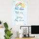 Un beau panneau d'accueil en baby shower d'aquarelle bleu avec un arc-en-ciel mignon, nuages et soleil de visage souriant pour votre douche de baby shower, fête etc Objets correspondants disponibles dans notre boutique.
