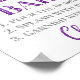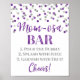 Affiche du bar Momosa pour le baby shower en blanc, violet foncé et motif de confetti argent avec lettrage manuscrit. Idéal pour les baby showers et l'aspersion de bébé.