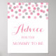 Utilisez nos conseils de pois de parties scintillant rose et argent pour que la maman signe pour informer les invités de remplir leur conseil pour la nouvelle maman. Vous pouvez facilement changer le libellé en "nouveaux parents" ou tout autre chose que vous préféreriez avant d'ajouter l'annonce à votre panier. N'oubliez pas de chercher nos cartes de conseils de coordination et d'autres articles de baby shower en jetant un oeil à notre collection de points de parties scintillant polka.