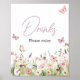 Affiche Baby shower Fleur sauvage petit papillon Boissons