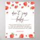 Affiche Baby shower fraise ne pas dire Baby Game Sign