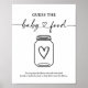 Invitations baby showers invités à participer à une partie de "Guess the Baby Food" avec ce panneau de table simple et élégant, avec un script moderne avec coeur.