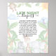 Affiche de couche pour nuit tardive, avec des illustrations aquarelles d'un singe, d'un perroquet, d'un rhinocéros et d'une girafe assis dans un fond de jungle verte. Les styles de police peuvent être modifiés en cliquant sur le lien 'personnaliser davantage' après la personnalisation.
