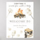 Aquarelle un feu de joie, marshmallows sur bâtons, sandwich biscuit. Feu de camp dans les bois.