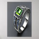 Une bague en argent cool, pierre verte et bleue avec un design unique. C'est un art généré par l'IA.