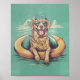 Poster joyeux illustrant un chien d'or en train de nager, parfait pour les amoureux des animaux et les amateurs d'art ludique.
