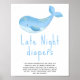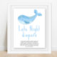 Un petit en chemin avec cette invitation au baby shower sur le thème de la mer, avec baleine à bébé dans des aquarelles bleu doux.