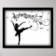Silhouette noire simple d'une danseuse de ballet avec bar de musique et notes