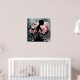 Poster noir/rose Ethereal Art Ballerina & Papillons. Art numérique féminin éthéré représentant la silhouette foncée d'une ballerine avec des papillons émergeant de sa robe, sur un arrière - plan rose floral.