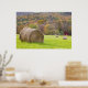 Affiche Balles de foin et feuillage de chute à la ferme,