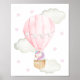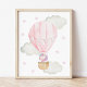 Affiche Ballon à Air Chaud Rose, Licorne, Étoiles, Chambre
