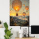 Découvrez la beauté de l'art impressionniste avec ce paysage serein de lever de soleil avec des montgolfières flottant doucement au-dessus d'une campagne paisible. Cette empreinte d'art saisit les teintes dorées et le mouvement tranquille de la nature, parfait pour un décor mural élégant.