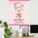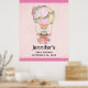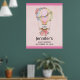 Un poster baby shower au design adorable avec une illustration aquarelle. Une montgolfière ornée de jolies fleurs rouges et roses. Un mignon petit ours blanc est assis dans le panier.
