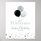 Bienvenue à votre invité avec ce joli signe de bienvenue de fête moderne de premier anniversaire. Ce design affiche une typographie et des ballons élégants avec des confettis en argent et noir. Décor de fête parfait pour la fête d'anniversaire d'un garçon. Les invitations et les fournitures de fête correspondants sont disponibles dans ma boutique BaraBomDesign.