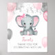 Invitation vos invités à prendre un plaisir avec cette adorable affiche de baby shower avec un éléphant de petite fille rose et gris avec des ballons et des confettis. Facilement customisé pour votre événement en cliquant sur "Personnaliser".