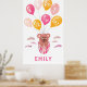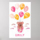 Affiche Ballons Ours Teddy Mignonne Fille Fête d'anniversa